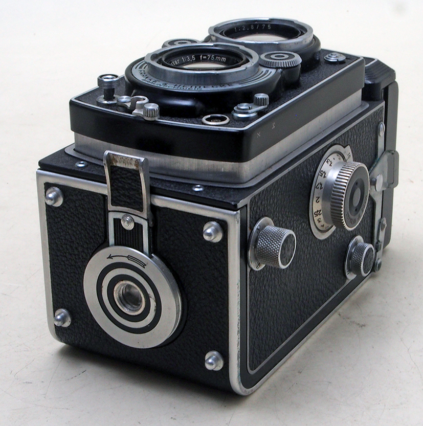 Rolleiflex Automat AObiettivo 75,35 Zeiss Tessar. Completa di tappi, tracolla e borsa in cuoio, perfettamente funzionante. Ottimo stato nonostante abbia più di 70 anni |