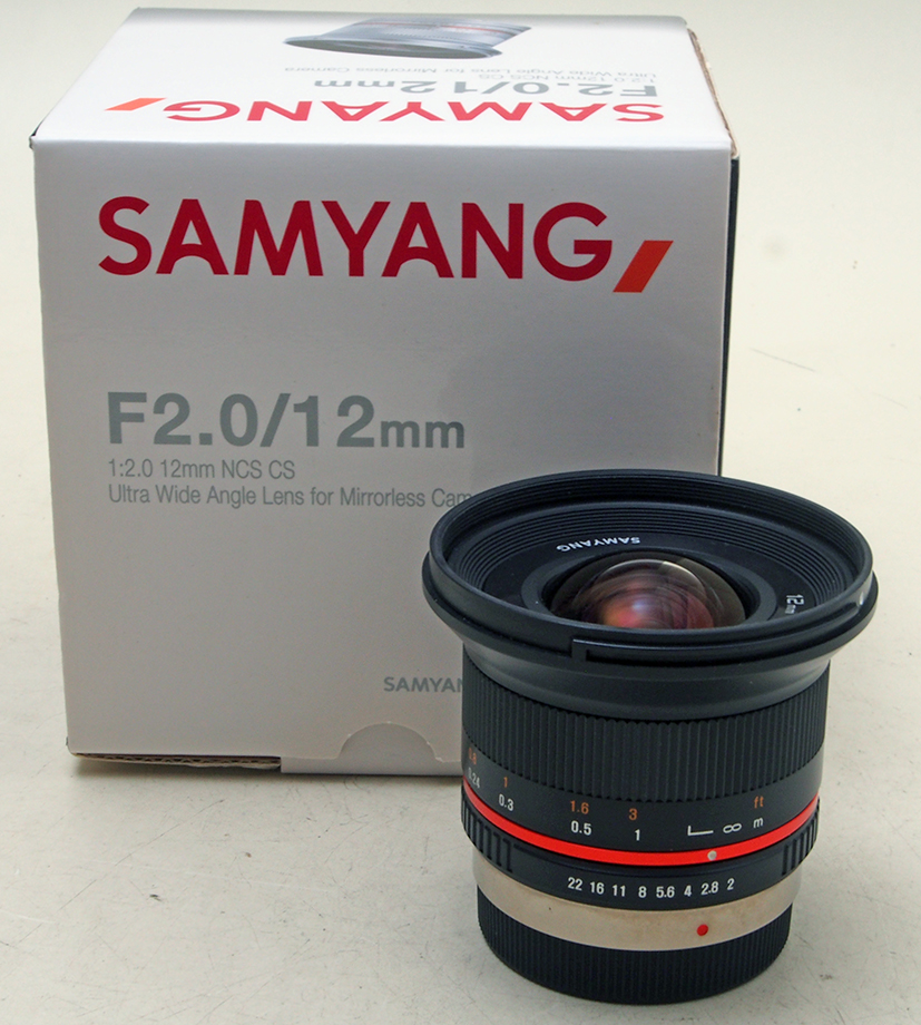 Olympus/Panasonic Ob. 12/2 SamyangCompleto di tutti gli accessori, come nuovo |