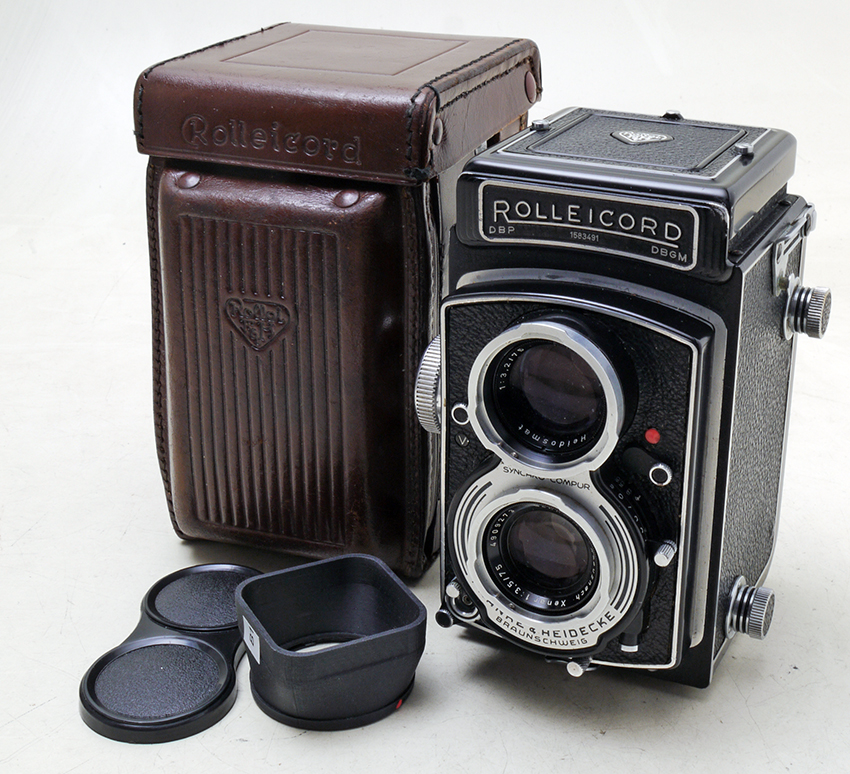 Rolleicord VCompleta di borsa, tappi e paraluce, revisionata e perfettamente funzionante, mirino pulito e contrastato. Ottimo stato con leggeri segni d'uso. |